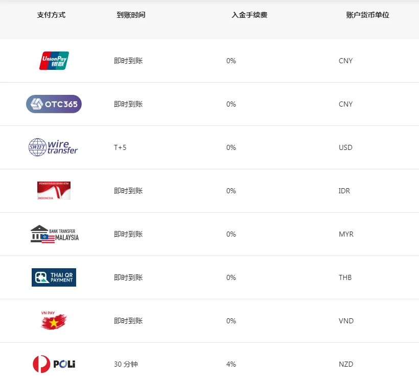 用便捷的出入金方式开始交易。我们一直在努力使您的出入金过程更便利、更高效。
